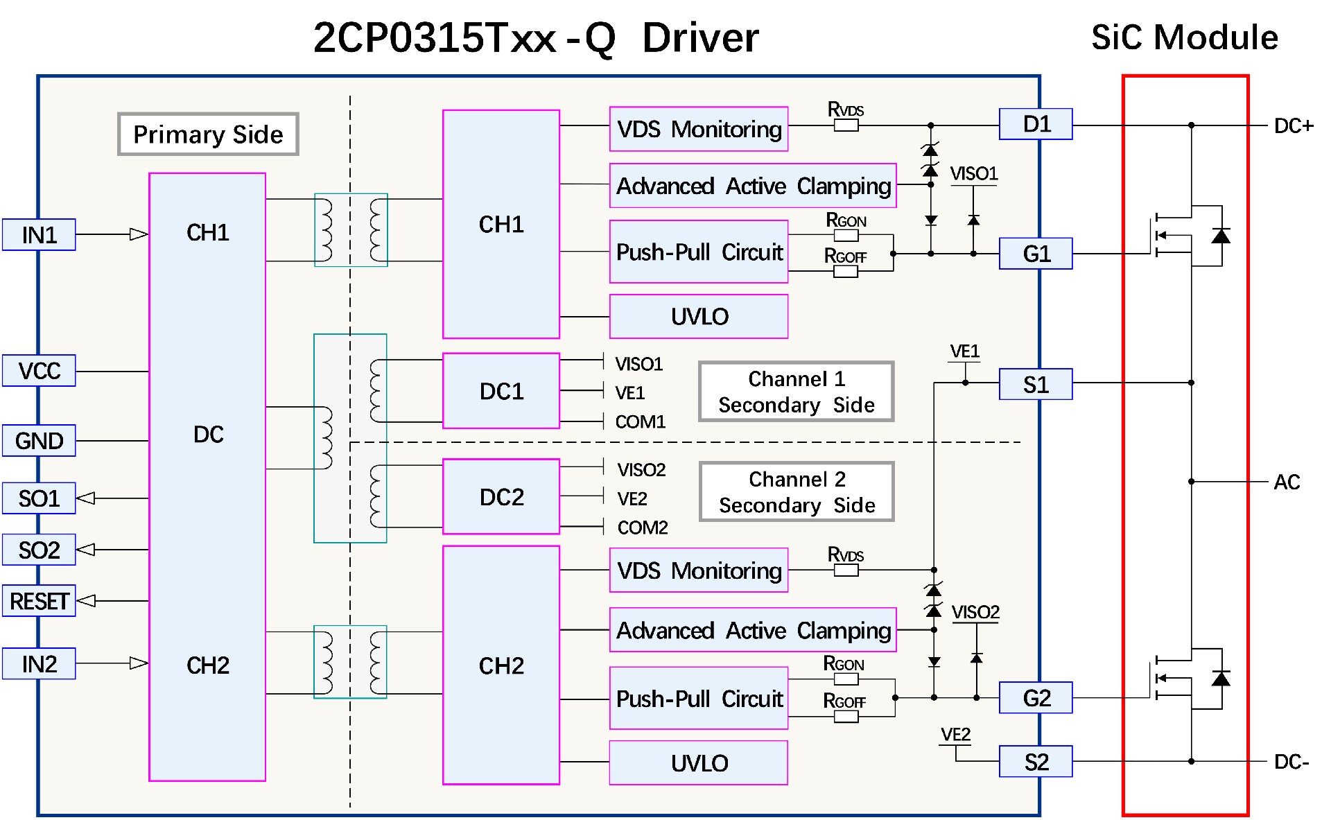 2CP0315Txx-Q is a dual-channel, high-reliability driver designed for motor drives and high-power SMPS applications.