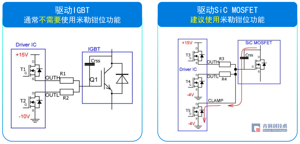在橋式電路中,功率器件會發生米勒現象,它是指當一個開關管在開通瞬間,使對管的門極電壓出現非預期的電壓抬升的趨勢。這種現象廣泛存在于功率器件中,包括IGBT、Si MOSFET、碳化硅MOSFET。